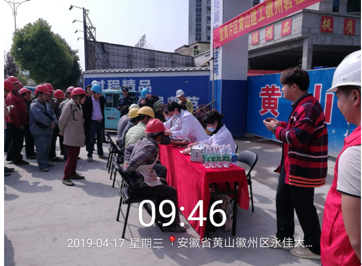 2019年4月17日上午9時(shí),黃山建工集團承建的徽州碧桂園德源項目工程東大門(mén),人聲鼎沸、歡聲笑語(yǔ),每個(gè)人臉上都洋溢著(zhù)幸福的笑容,他們排著(zhù)隊,有組織、有秩序地參加由碧桂園德源工程施工項目部組織的“關(guān)愛(ài)健康、免費體檢”活動(dòng)。此次體檢活動(dòng)邀請了屯溪同仁門(mén)診部的四名醫生,分科體檢,對每位職工的心率、血壓、外科、口腔等做了細致的檢查,并做好體檢記錄,同時(shí)對工友們關(guān)心的日常生活問(wèn)題、常識做了解答和溫馨提示,此次項目部參加體檢人員惠及95名。本次活動(dòng)是為了增強員工關(guān)懷,保障員工身體健康,營(yíng)造”平安、和諧、幸福、美麗”的示范工地。