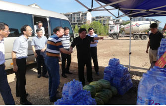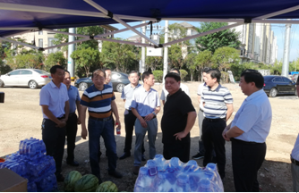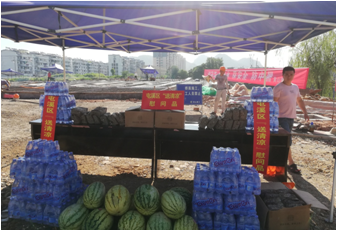 烈日下的八一大橋項目現場(chǎng)一片繁忙景象,工人們有的在支模、有的在焊接鋼筋、有的在澆筑砼,一切都井然有序,忙而不亂。屯溪區區委書(shū)記江善良一行一到現場(chǎng),就將一件件防暑降溫慰問(wèn)品遞到在施工的工人們手中,并囑咐在高溫下施工的操作人員要多注意休息、及時(shí)補充水分和營(yíng)養,按項目部要求合理安排工作時(shí)間,避免中午高溫時(shí)間段施工,同時(shí)要求項目部積極做好防暑降溫工作,保障施工一線(xiàn)工人的生命安全。充分體現了屯溪區委、區政府等領(lǐng)導對我集團公司的一片深情厚誼和關(guān)懷。