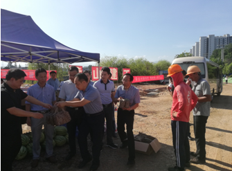 二〇一九年八月二日上午,黃山市屯溪區區委書(shū)記江善良率區四大班子及相關(guān)部門(mén)領(lǐng)導冒著(zhù)酷暑,頂著(zhù)驕陽(yáng),風(fēng)塵仆仆親赴黃山市建工集團正在緊張施工中的黃山市重點(diǎn)工程項目八一大橋項目現場(chǎng)“送清涼”。