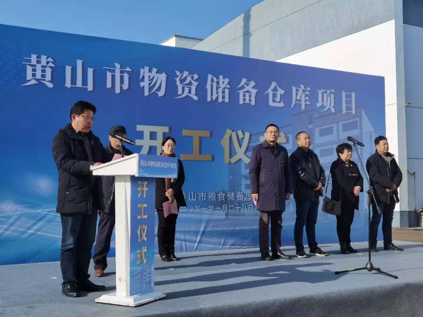 2021年1月28日上午9:30,黃山市物資儲備庫項目開(kāi)工奠基活動(dòng)在九龍工業(yè)園區項目地舉行,省糧食和物資儲備局物資和能源儲備處處長(cháng)孫安慶、四級調研員何薇、市發(fā)展改革委(市糧食儲備局)主任(局長(cháng))丁士禮、建設單位主要負責人、黃山建工集團總經(jīng)理葉金發(fā)等相關(guān)單位負責人參加了奠基儀式。