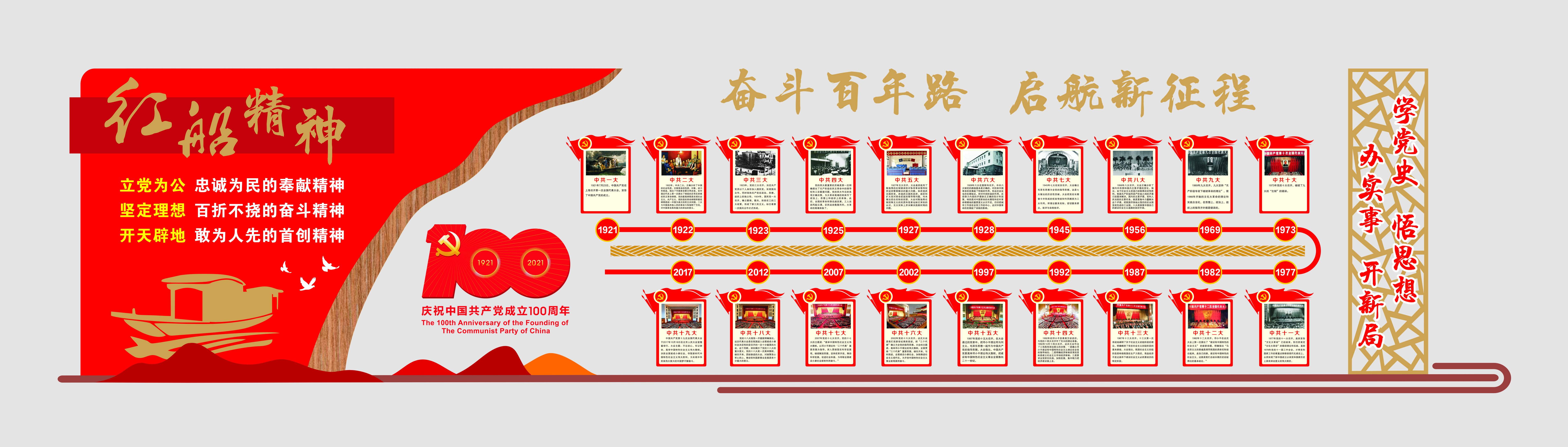 展板內容主要是:1921年7月中國共產(chǎn)黨的成立到2021年7月黨的百年發(fā)展簡(jiǎn)史等內容。