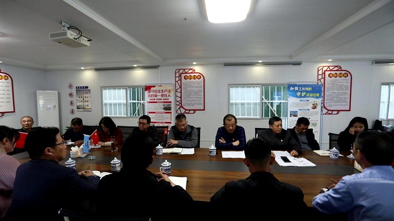 接著(zhù)建工集團總支委員、總經(jīng)理葉金發(fā)同志作了文瀾軒“智慧工地”、“最干凈標化工地”、“紅色工地”創(chuàng )建工作情況匯報。