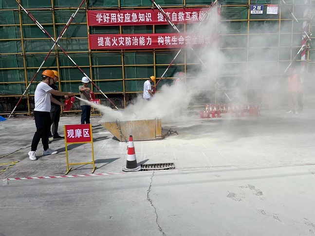 2023年6月是全國第22個(gè)“安全生產(chǎn)月”,為深入貫徹落實(shí)習近平總書(shū)記關(guān)于安全生產(chǎn)重要論述,嚴格落實(shí)集團公司關(guān)于安全生產(chǎn)各項規定,進(jìn)一步強化公司整體消防應急救援綜合能力。6月8日下午,集團公司在齊云府六期項目開(kāi)展“人人講安全、個(gè)個(gè)會(huì )應急”消防安全應急演練活動(dòng)。項目安全員開(kāi)展消防器材的使用、撲救初起火災疏散逃生等消防安全常識的培訓。以通俗易懂的方式,深刻警示全體員工要提高對消防安全的重視。