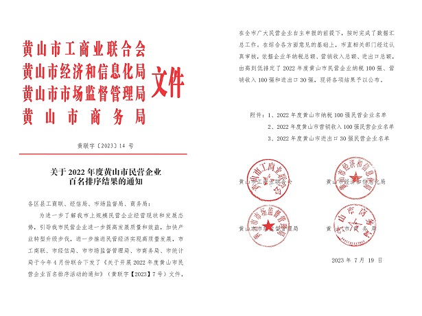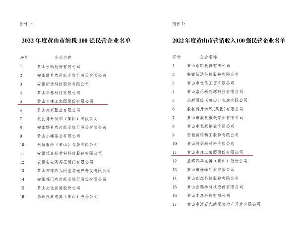 日前,由黃山市工商聯(lián)、市經(jīng)信局、市監管局及市商務(wù)局聯(lián)合發(fā)布2022年度黃山市民營(yíng)企業(yè)納稅及營(yíng)銷(xiāo)收入百強名單公布,黃山建工集團連續多年再次實(shí)力入圍,獲此殊榮!