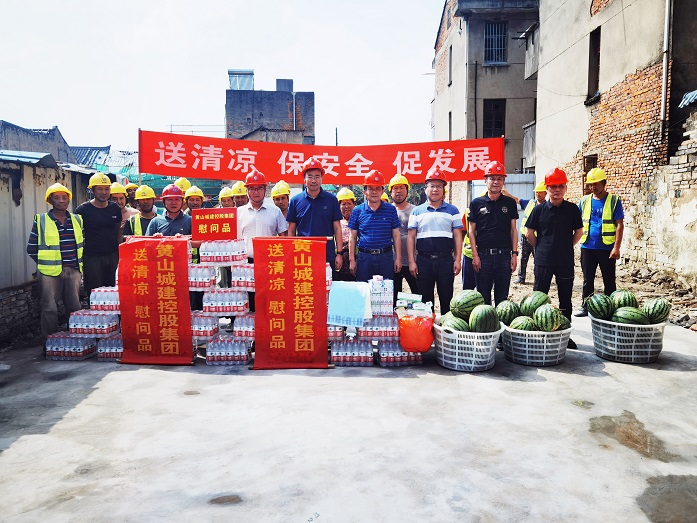 烈日炎炎,氣溫居高不下。為保障項目職工安全健康權益,確保項目安全生產(chǎn)平穩推進(jìn),8月10日上午,黃山城投城建控股有限公司總經(jīng)理汪國文等一行赴寧國市河瀝文化街區EPC項目工地開(kāi)展走訪(fǎng)調研暨“夏送清涼”慰問(wèn)活動(dòng)。黃山建工集團股份有限公司董事長(cháng)項端陽(yáng)、總經(jīng)理葉金發(fā)、副總經(jīng)理吳學(xué)武陪同調研慰問(wèn)。