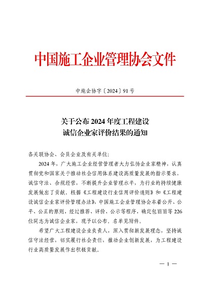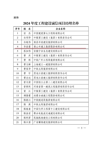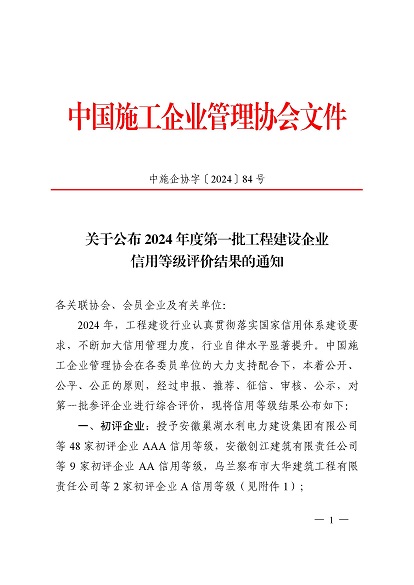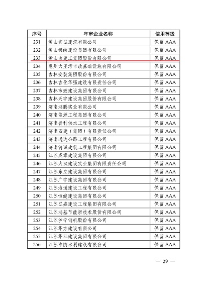 近日,中國施工企業(yè)管理協(xié)會(huì )公布了2024年度第一批工程建設企業(yè)信用等級評價(jià)結果的通知、工程建設誠信企業(yè)家評價(jià)結果、工程建設誠信項目經(jīng)理名單。黃山建工集團順利通過(guò)AAA級信用企業(yè)的年審,繼續保持AAA信用等級的殊榮。黃山建工集團總經(jīng)理葉金發(fā)獲評誠信企業(yè)家,項目經(jīng)理畢星豪獲評誠信項目經(jīng)理。此次榮譽(yù)是對黃山建工集團在工程建設領(lǐng)域的綜合實(shí)力和誠信經(jīng)營(yíng)的高度認可。
